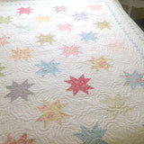 Here the Ohio Star blocks are placed with setting squares - giving the quilt an airy-ness & then bordered with fun ‘dotted” borders (large size). This quilt could be made an any colorway & look wonderful!
