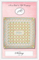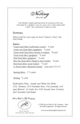 Little bluebirds, happily gathering pretties for sprucing up their nests. Surrounded by a 'gingham' center & a sweet, easy to stitch scallop border. A quilt - that is guaranteed to make you smile!